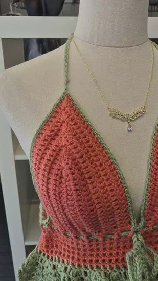 🧵 Coral & Pistachio Green Crochet Top – Vibrant Threads, Handcrafted Style